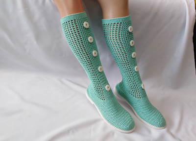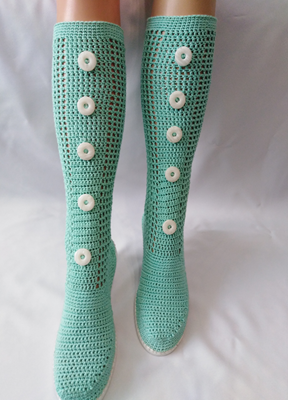 Замечательные женские сапожки-ботинки.Работа выполнена крючком из 100% мерсеризованного хлопка.Вязаная обувь не только модно и стильно,это и комфорт.и уют для ваших ножек.А для проблемных ножек-это просто находка,нигде не жмет,нигде не давит.Ваши ножки скажут вам спасибо.