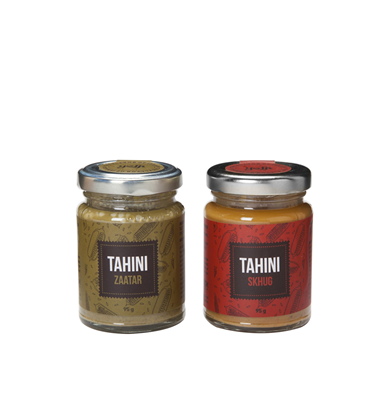 This is a set of two tahinis with different spice blends so loved by the Israelis: skhug and zaatar.