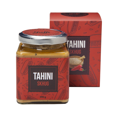 Паста тахини из молотых зерен кунжута с острой приправой красный схуг удивительное сочетание традиционной израильской кухни с позаимствованным рецептом национальной кухни Йемена. Схуг жгуч от перцев чили, острый от чеснока и ароматный от экзотического