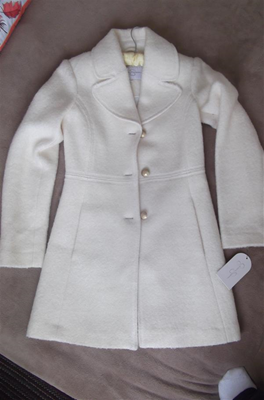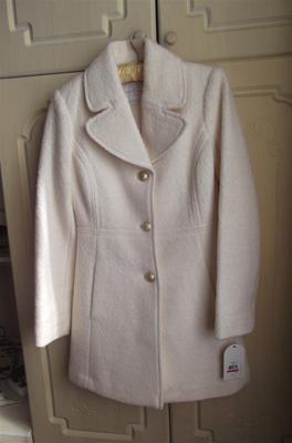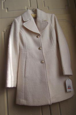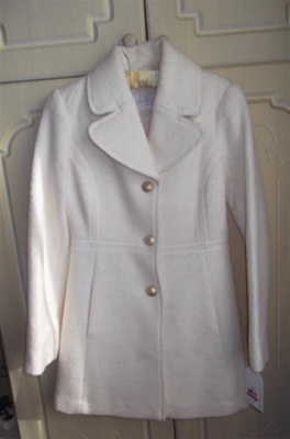 Пальто женское, цвет молочный или светло-кремовый. Новое!!! Размер 40-42 (XS). "JESSICA SIMPSON" Состав: шерсть - 46%, полистэр - 54%. Подкладка светлая. Приталенное. Чуть выше колена.