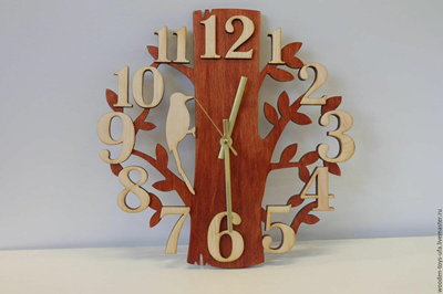 Часы Дерево с птичкой материал-дерево размер 37см/37см
