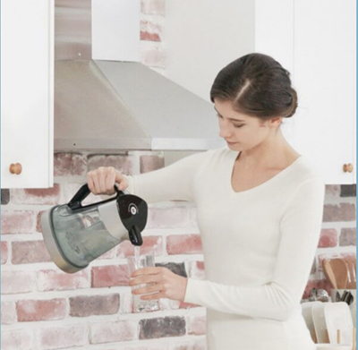 Grentech Soovon выполнен в форме кувшина . напоминающего привычный электрочайник , с удобной ручкой и откидной крышкой .Для предварительной очистки воды в конструкции предусмотрен минеральный фильтр . рассчитанный на3-6 месяцев активного испо