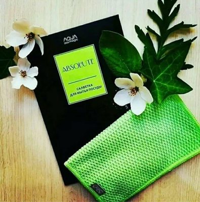 плит, так как не царапает поверхность. Вторая сторона салфетки — мягкая, применяется для мытья нежирной посуды, полировки поверхности,изделий из стекла и хрусталя, мытья кухонной техники. Собирает излишки влаги, при этом не оставляет разводов. Как и все изделия серии Absolut, эта салфетка содержит ионы серебра, тем самым обеспечивает дезинфекцию на вашей кухне.