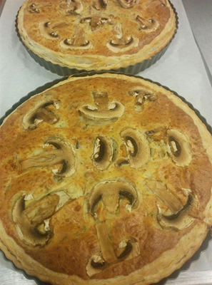 Открытый овощной пирог с сыром белым 5%, Моцарелла 28% , Пармезан 23% и добавляем коктейль грибной из грибов Шампиньонов и Портабэлло поджаренными с луком и чесноком. С добавлением яиц, муки и разрыхлителя. Для любителей базиликума - можно добавить ,вкусовое качество пирога повысится .Вес 1.300-400грм.