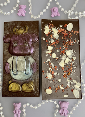 Шоколад ручной работы с добавлением орехов и сублимированных ягод. Возможны вкусы - темный, молочный, белый. Изготовление под заказ до 3-х дней.