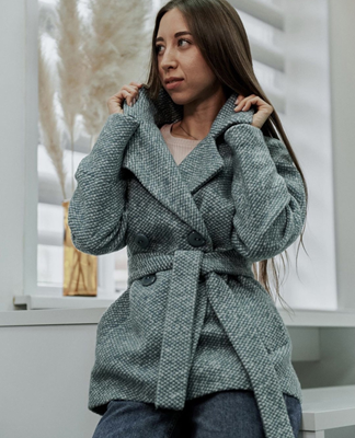 Короткое пальто, очень модное в эту весну, можно носить с поясом и без него.