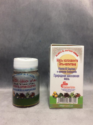 Мазь колоквинта с черным тмином египетского производителя Эль Капитана применяется при болях в суставах, ревматизме, подагре, мышечных спазмах, болях в сухожилиях, отеках. Как массажное средство прекрасно подходит для людей активно занимающихся спортом и усиленными тренировками.