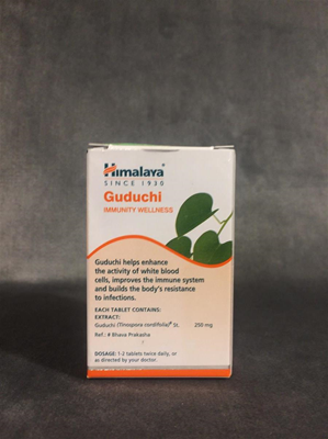 качество крови и очищает организм от шлаков и токсинов. Он помогает даже при таких тяжелых недугах как гепатит, туберкулез и диабет. Замедляет процессы изнашивания органов и преждевременное старение. Восстанавливает поврежденные органы, очищает организм, следствием чего является избавление от хронических заболеваний. Выступая в качестве иммуномодулятора, Гудучи укрепляет иммунную систему и усиливает тем самым её сопротивление к инфекциям, а также облегчает состояние при хронической и острой вирусной лихорадке, мочеполовых инфекциях, головной боли, анемии, желтухе, кровотечениях, чрезмерной жажде, артрите и артрозе. Кроме того, препарат очень полезен при проблемах кожи, таких как угревая сыпь, псориаз, проказа, экзема, красный плоский лишай, рожа, зудящие высыпания и других, так как является естественным очистителем крови. Средство оказывает настолько сильное воздействие, что очищает от токсинов даже мозг, что способствует в результате улучшению умственной деятельности. Всё это делает Гудучи отличным профилактическим и лечебным средством против стрессов, тревоги и депрессии. Препарат может используется в качестве вспомогательного средства при химиотерапии раковых опухолей. Не является лекарственным средством. Перед применением проконсультируйтесь с врачом. Видео Активные ингредиенты * Гудучи (Tinospora cordifolia). Гудучи, или гилой, это лекарственное растение, которое используется для лечения различных заболеваний. Его часто называют амритой, что в переводе с санскрита означает "божественный нектар". Это иммуностимулирующее средство является отличным антиоксидантом и эффективно при общей слабости организма. Он способствует укреплению иммунитета и очищает организм от токсинов. Это естественный очиститель крови, который очень полезен при проблемах кожи, таких как угревая сыпь, псориаз, проказа, экзема, красный плоский лишай, рожа, зудящие высыпания и др. Укрепляет память, дарует молодость, улучшает цвет лица, голос, сияние кожи, снимает жжение, нормализует температуру, увеличивает энергию и аппетит, очищает грудное молоко, улучшает сперматогенез. Характеристики Форма выпуска * Таблетки Назначение по Аюрведе * Омоложение организма * Очищение организма * Антиоксидант * Иммунитет * Афродизиак * Диабет Активные ингредиенты * Гудучи (Tinospora cordifolia) Бренд Хималая Хербалс (Himalaya Herbals) Страна производителя * Индия Инструкция Гудучи 1 таблетка два раза в день с теплой водой, медом, топленым маслом (гхи) или по указанию аюрведического специалиста
