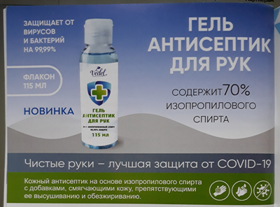 Гель - антисептик для рук защищает от вирусов и бактерий на 99,99%. Кожный антисептик , содержит 70% изопропилового спирта и добавки, смягчающие кожу, препятствующие её высушиванию и обезвоживанию.