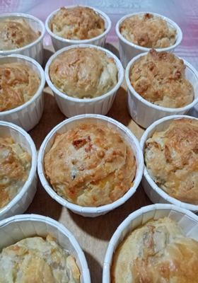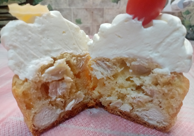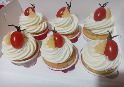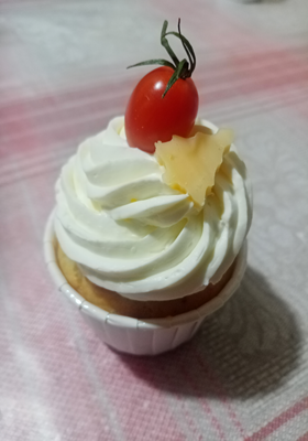 Капкейки сытные с курицей и сыром твёрдых сортов, по желанию добавление оливки. Крем творожный с добавлением укропа. Украшение по индивидуальному заказу (огурцы, помидоры черри, сухарики и т.д.)