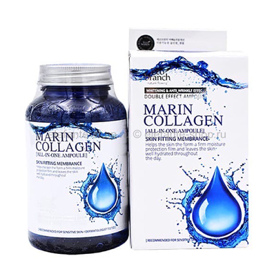 Eco Branch Collagen All-In-One Ampoule Skin – Известно, что морщины появляются на коже, страдающей нехваткой влаги. Именно эту проблему и призван решить морской коллаген. Он отлично увлажняет, буквально «закупоривает» влагу в клетках, дарит коже гладкость и потрясающую упругость, питает клетки морскими минералами, нормализует их питательный баланс и укрепляет.