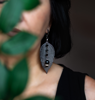 Серьги-листики. Чёрные.