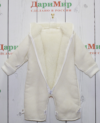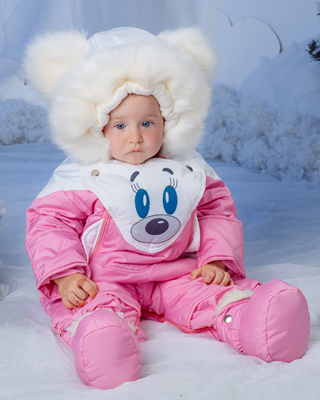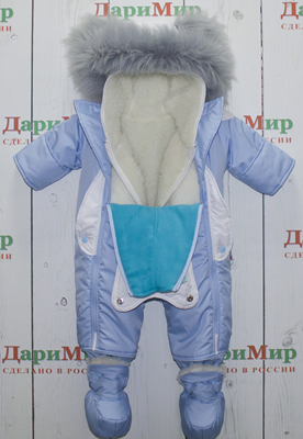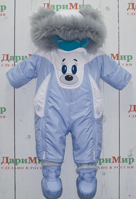 имеет две молнии на грудке для удобства пользования, заветренные планки, защищающие от продувания. Трансформерная молния между ножек легко помогает переделать конверт в комбинезон. Низ конверта застегивается на кнопки. Комбинезон с ножками можно застегивать на кнопки, а когда ребенок подрос - пристегивать пинетки. Очень удобны рукавички-клапаны, которые помогут спрятать ручки ребенка в сырую погоду. Приятный на ощупь флис в качестве подкладки прекрасно сохраняет тепло, поддерживает комфортную температуру тела. Удобный карман на грудке для соски, платочка, спрятанный за мордочкой медвежонка. Кюпюшон объемный с меховыми ушками. Мех гипоаллергенный. Меховой комбинезон имеет особенности: капюшон, трикотажные манжеты на рукавах - и используется в зимний период времени, пристегивая на кнопки к основному комбинезону. Декоративные элементы - белая мордочка мишки, белые лапки