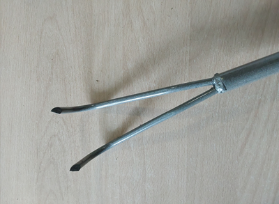 Металлический рухлитель с двумя острыми зубьями,диаметр зуба 3мм