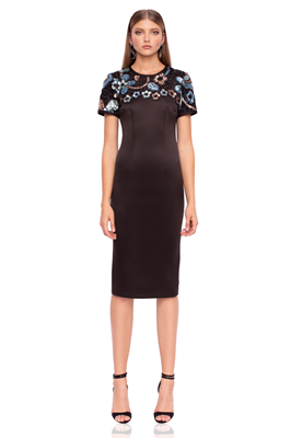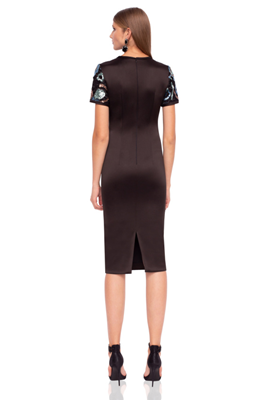 Артикул: RS10226 Размер: 36,38 (+4) Цвет: Черный Материал: 100% полиэстер/92% полиэстер, 8% спандекс Страна: Румыния Платье футляр классического силуэта длины миди. Лиф и рукава декорированы шитьем с пайетками. Короткий рукав. В этом платье Вы не останетесь незмеченной и будете всегда в центре внимания.