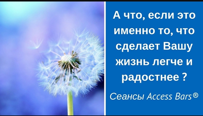 Access Bars® помогли тысячам людей изменить такие аспекты тела и жизни, связанные со сном, здоровьем и весом, деньгами, сексом и отношениями, тревогами и страхами, стрессом и многими другими. Самое худшее, что вы испытаете, как будто вам сделали лучший массаж в вашей жизни. Самое лучшее - вся ваша жизнь изменится! Бары создают больше возм