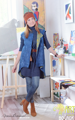 Ручная авторская работа. Жилет, летнее пальто без рукавов, изготовлен из высококачественного мериноса производства Италии. Декорирован вискозой ручного окрашивания и натуральным шёлком. Картина по мотивам великого художника выполнена в технике батик (ручная роспись шёлка). Подобное изделие единственное в мире, повтор невозможен.
