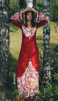 Роскошное платье сшито из 100% натурального белорусского льна, украшено льняным кружевом.