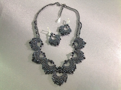 В изделии использован качественный японский бисер разного размера и стеклянные кристаллы графитового оттенка.