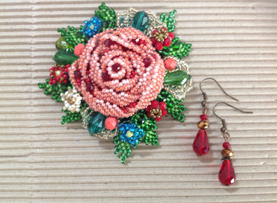 Великолепный набор из броши и серёжек. Это украшение сделает вашу одежду праздничной, подарит, Вам, и, 0,1окружающим, Вас положительные эмоции. Я использовала технику объемной вышивки и плетения бисером. Чтобы сделать эти украшения, я тщательно подбирала необыкновенной красоты и цвета японский бисер, бусины и кристаллы Swarovski. Для задней части броши я использовалf экокожу.
