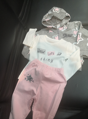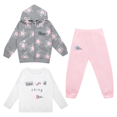 Комплект для малышей сер/роз (жакет + брюки + джемпер)