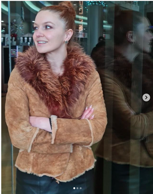 Дублёнка лёгкая, с песцовым воротником. подходит , как к брюкам, так и юбкам. Красиво выделяет талию , женственность и элегантность.