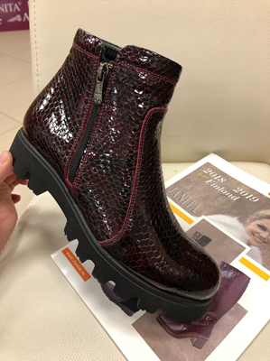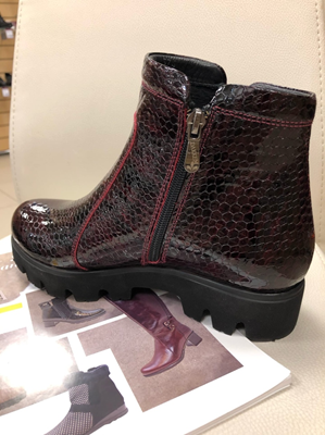 Женские ботинки демисезонные ,бордовый лак,подошва утолщенная,имеется замок.Модная модель пр-ва Турции ,размеры 38,39,40.
