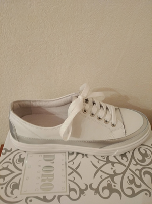 Кроссовки женские летние ,натуральная кожа. Цвет - белый ,Полнота хорошая , мягкая , толстая подошва . Размеры 39,40.