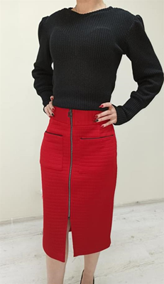 Вязаный свитер с приталенной юбкой можно сочетать как с туфлями так и с сапогами на низком ходу.