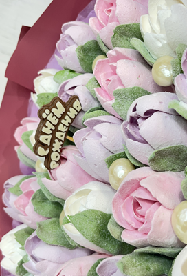Зефирный букет выглядят невероятно красиво, огромный плюс, он долго хранится и конечно же вкус, очень мягкий, нежный, натуральный и покорит всех кто его попробует.