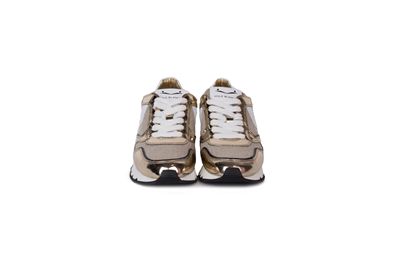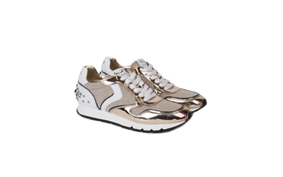 Кроссовки от премиум-бренда Voile Blanche выполнены из износоустойчивого текстиля в сочетании с натуральной кожей и лаковой искусственной кожей. Особенности: комбинированный дизайн, шнуровка по центру, съемная кожаная стелька с подложкой из ЭВА.