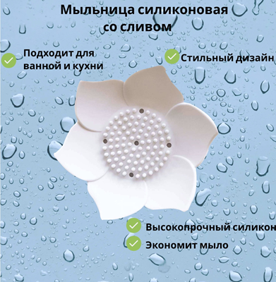 Стильная, удобная силиконовая мыльница в стиле минимализма, впишется в любой интерьер Вашего дома и всегда будет радовать Вас и Ваших гостей. Подходит для любых размеров мыла и губки. Прекрасно держится на любой поверхности, не скользит, отлично моется, имеются отверстия для стока воды благодаря которым Ваше мыло всегда будет сухим. Можно использовать, как держатель для губки, держатель кухонный. Мыльница высокого качества, имеет оригинальный дизайн. Диаметр 12.5 см. Любуйтесь и наслаждайтесь стильным и удобным дизайном ежедневно!
