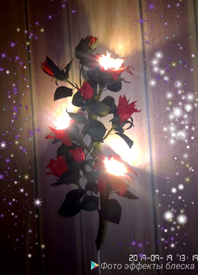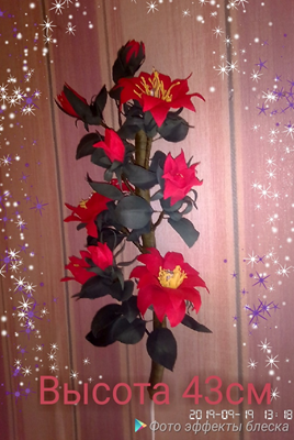 Настенный ночник на три лампочки. Материал фоамиран ,работает от сети.Высота 43 см. диаметр цветов от 2см до 9см.Работает только от светодиодных ламп.