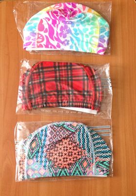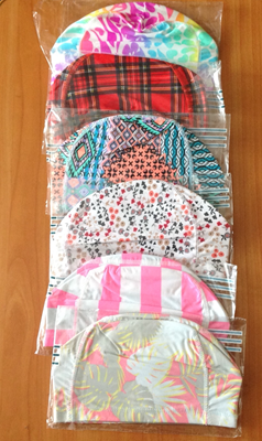 Шапочки для плавания тканевые. В наличии мужские-чёрные и женские-цветные.