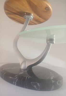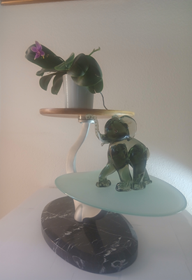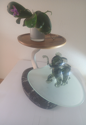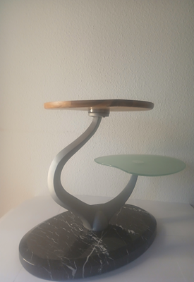 Dieser exklusive Blumenständer ist ein wahres Design-Highlight. Die geschwungene Form erinnert an einen Schwanenhals und verbindet Leichtigkeit mit Eleganz. Zwei Ablagen – eine aus edlem Holz und eine aus hochwertigem Glas – bieten Platz für Blumen, Pflanzen oder dekorative Objekte und setzen diese stilvoll in Szene.